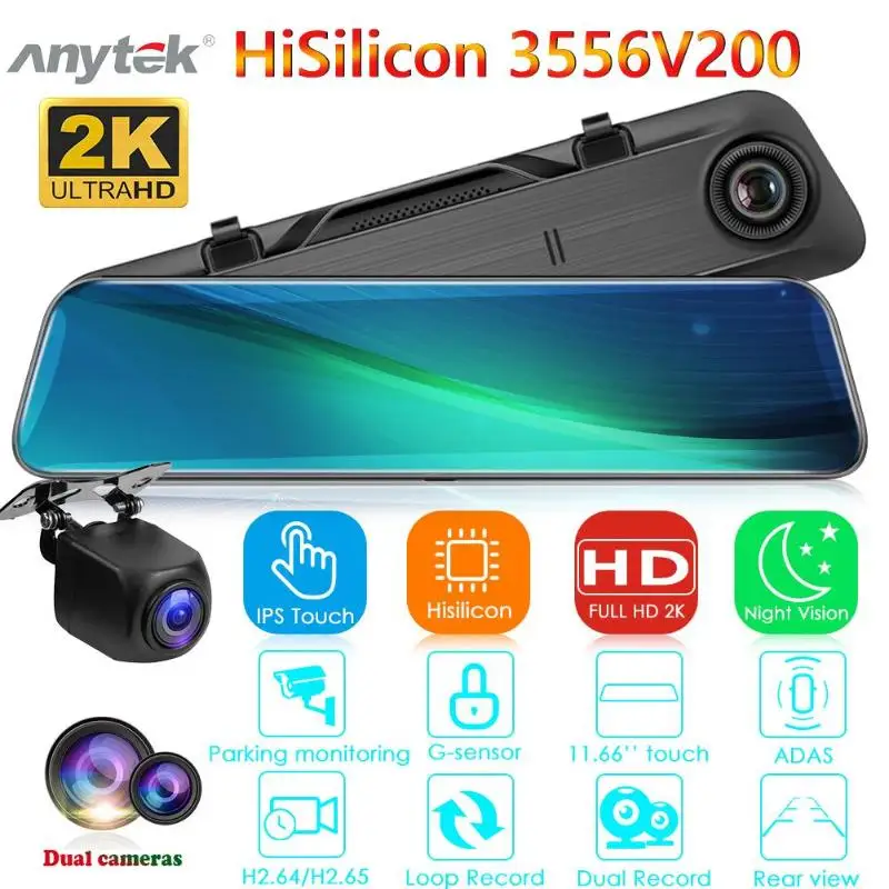 Special Offer Anytek A9 kamera samochodowa dvr 1440p Dashcam 11.66 cal IPS kamery samochodu rejestrator na lusterko wsteczne podwójny obiektyw ADAS Night Vision wideo Discount 15% Today!