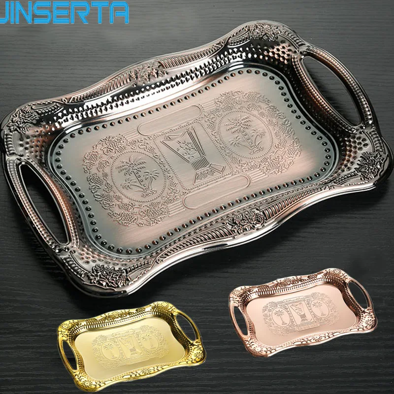 Special Offer JINSERTA taca metalowa Retro deser ciasto płyta kubek do herbaty taca kawy z uchwytem do domu strona na wesele, do hotelu wystrój kawiarni Discount 25% Today!