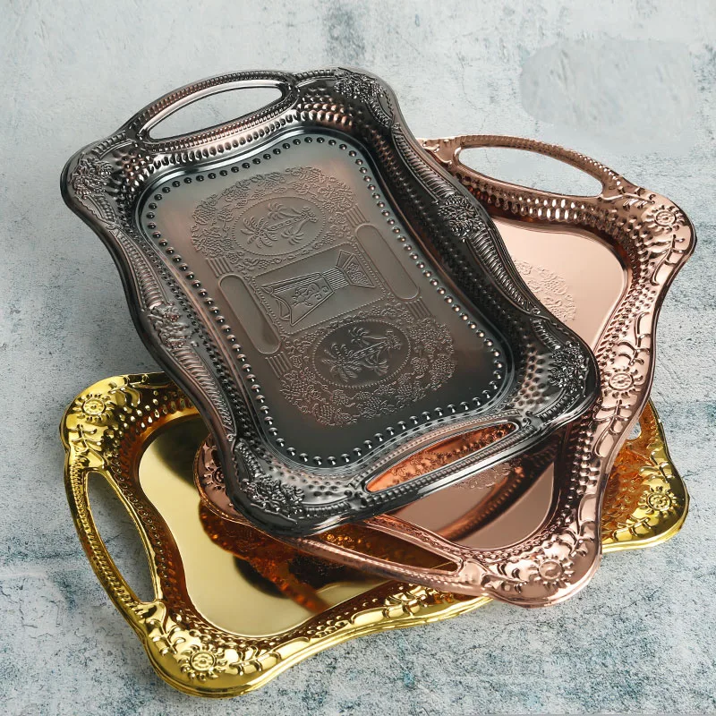 Product Name: JINSERTA taca metalowa Retro deser ciasto płyta kubek do herbaty taca kawy z uchwytem do domu strona na wesele, do hotelu wystrój kawiarni