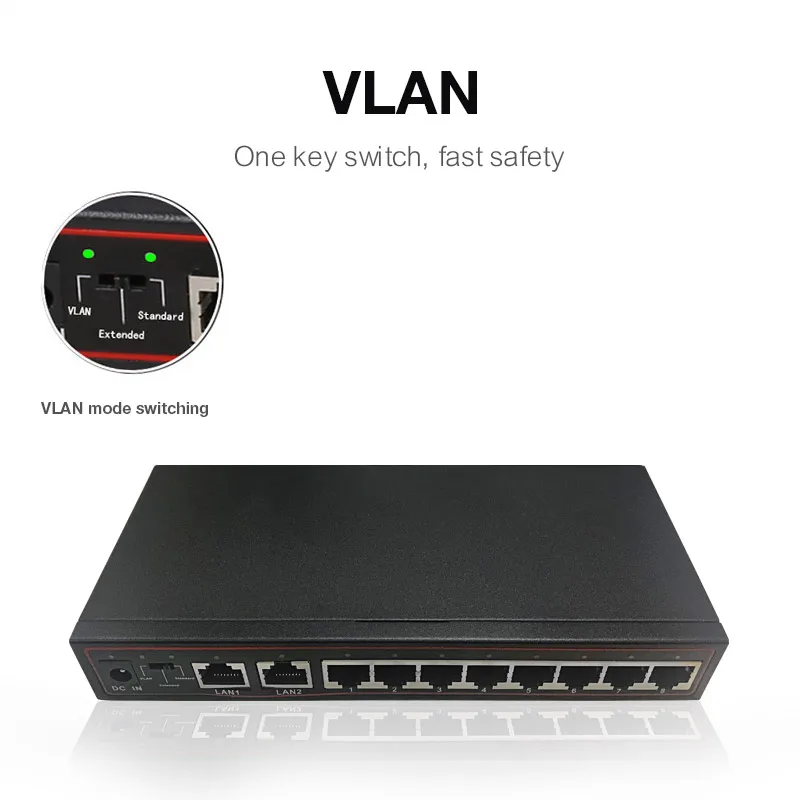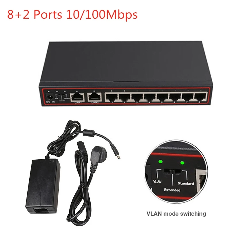 Product Name: 8 + 2 porty 10 100Mbps SPoE Switch wtryskiwacz Power over włącznik ethernet dla kamery ip AP VoIP Network Vlan inteligentny przełącznik