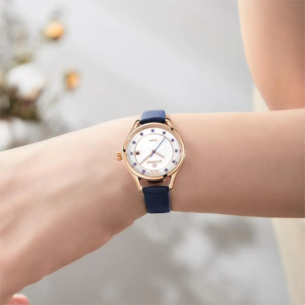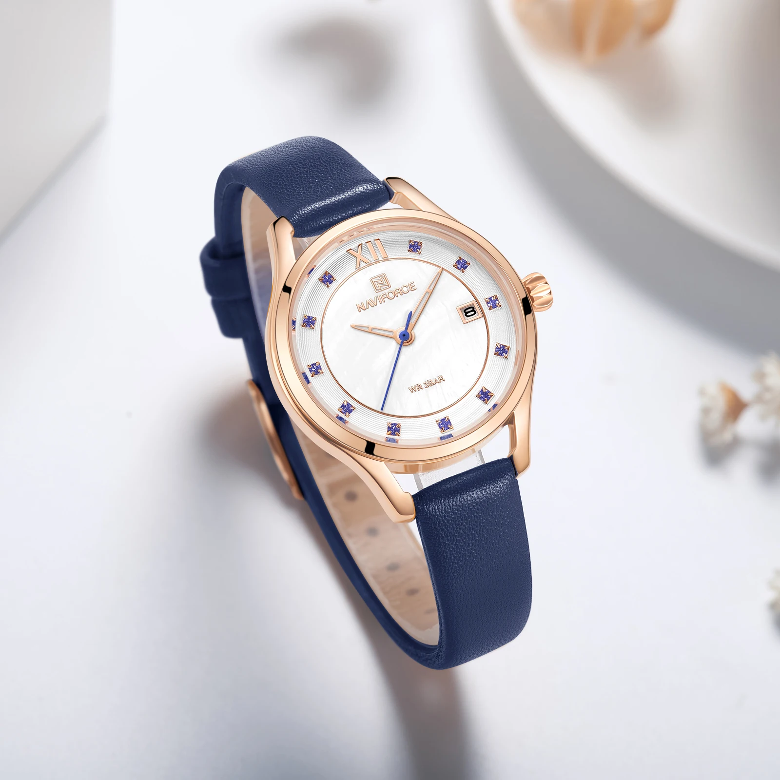 Product Name: NAVIFORCE kobiet zegarka mody sukienka zegarek kwarcowy Lady skórzane na co dzień zegarek wodoodporny prezent dla żony fioletowy zielony żółty czerwony