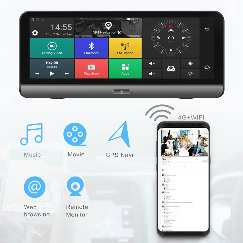 Product Name: ANSTAR Pro 3G 4G kamera samochodowa GPS 8 \"Android 5.1 FHD 1080P WIFI wideorejestrator kamera na deskę rozdzielczą rejestrator monitorowanie parkowania podwójny obiektyw