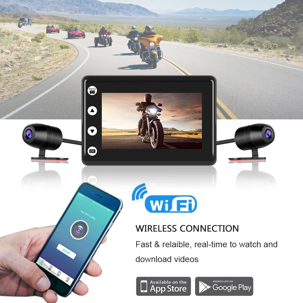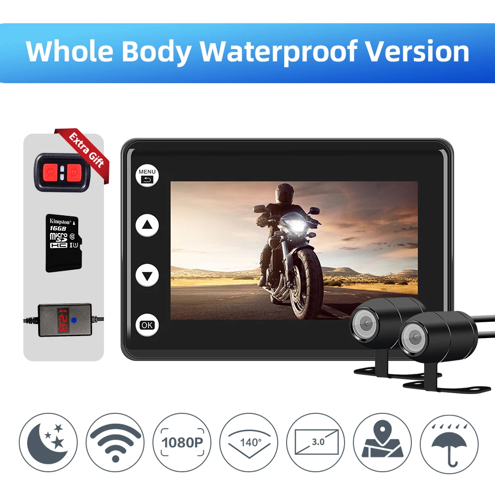 Product Name: Wodoodporna kamera na deskę rozdzielczą moto rcycle wifi moto dvr 1080P 140 ° moto rbike podwójna kamera starvis noktowizor dashcam GPS 3 \"wyświetlacz