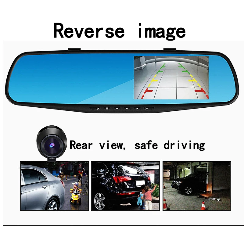 Product Name: Kamera samochodowa Full HD 1080P 4.3 \"Night Vision lusterko wsteczne cyfrowy rejestrator jazdy wideo podwójny obiektyw monitor do parkowania kamera na deskę rozdzielczą