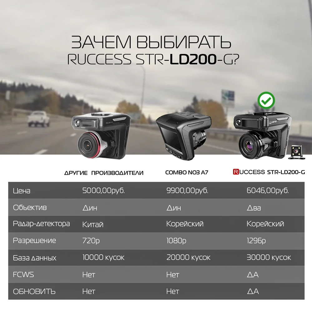 Product Name: Ruccess detektor radaru samochodowego dvr GPS 3 w 1 Full HD 1296P 1080P wideorejestrator aparat podwójny obiektyw kamera na deskę rozdzielczą Speedcam rosyjski