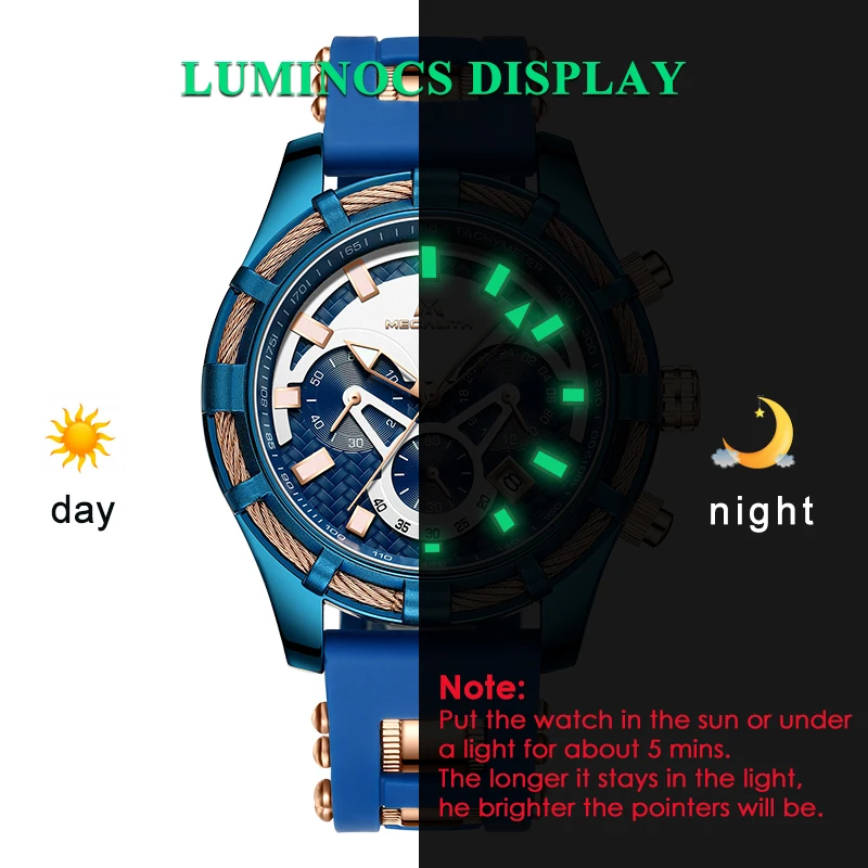 Product Name: MEGALITH moda Luminous Displ mężczyźni zegarki Top marka luksusowe wodoodporny Sport Chronograph zegarek kwarcowy na rękę Relogio Masculino