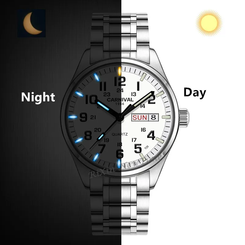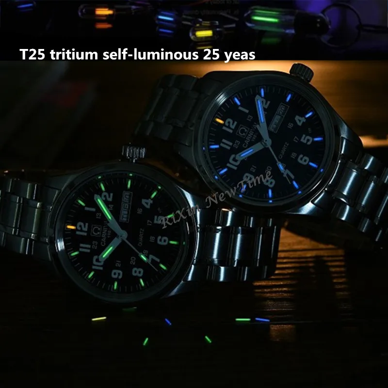 Product Name: Karnawał tryt lekki męski zegarek kwarcowy z podwójnym kalendarzem data tryt Luminous wodoodporny 200M wojskowy nurkowanie zegarki sapphire