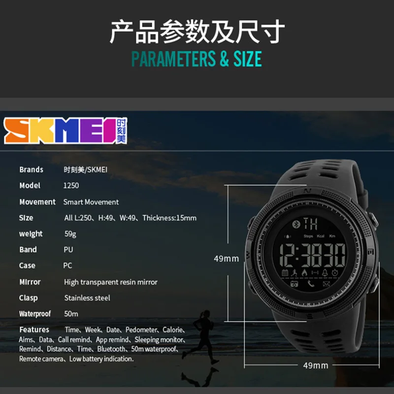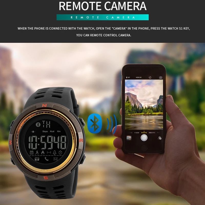 Product Name: Inteligentny zegarek dla IOS Android mężczyźni Sport zegarek licznik kalorii krokomierz zdalny cyfrowy męski Smartwatch Reloj inteligente SKMEI